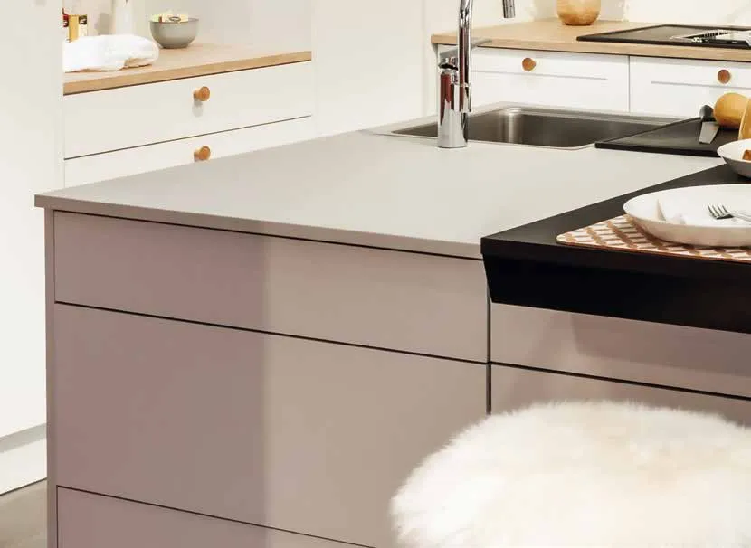 - LaminatbÀnkskivornas kantprofil Àr beroende pÄ fÀrg antingen rak kant eller postformad kant R5