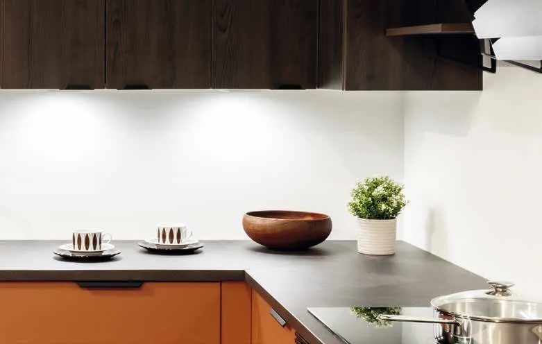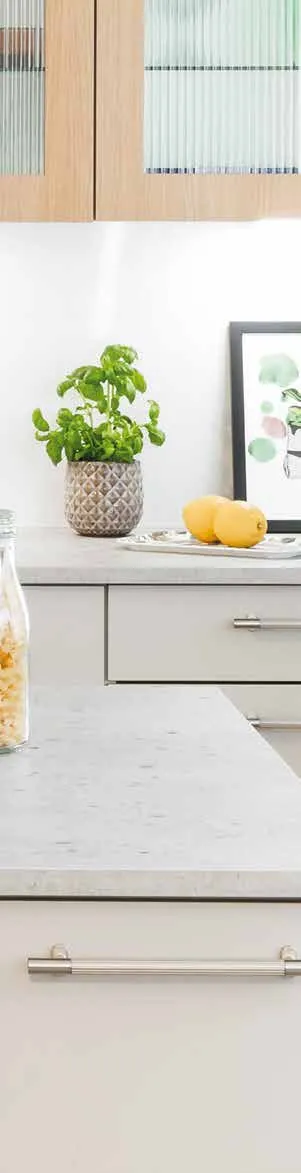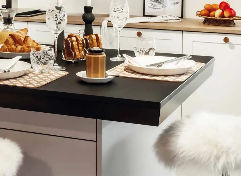 - PÄ hela skivor Àr framkanten kantlistad med en 1 mm tjock ABS-kantlist i samma fÀrg som ytan