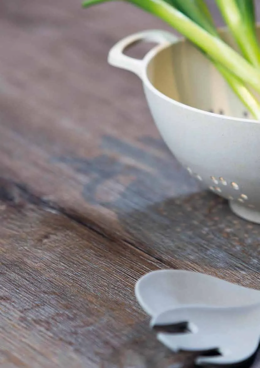 Observera att blottade trÀytor som uppstÄr vid montering eller anpassning av bÀnkskivorna ocksÄ ska behandlas tre gÄnger med nÀmnda medel.