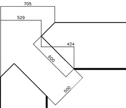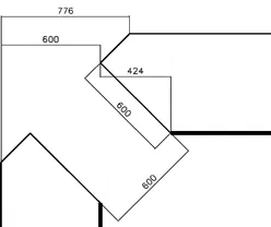 Spishörnskiva djup 600 mm