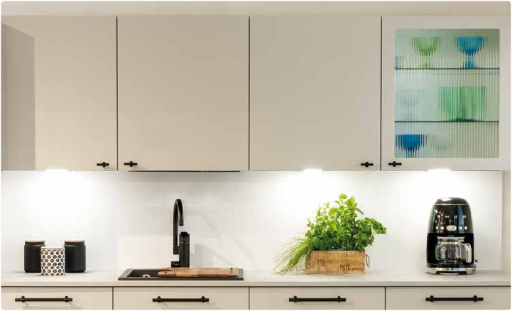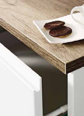 | Kantlist | Högblank Luckor -> 2-färgad kantlist.Täcksidor -> ytfärgad 1 mm ABS-list. |