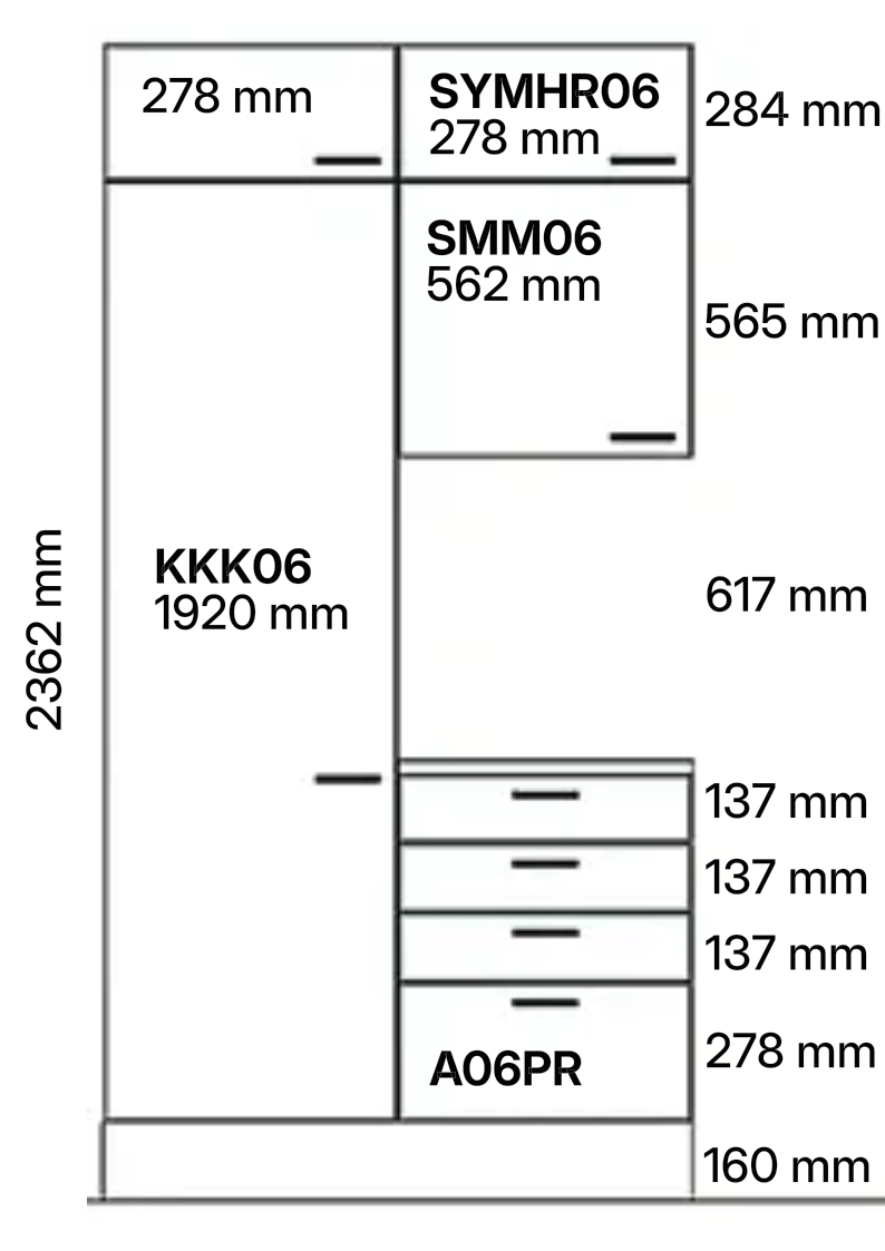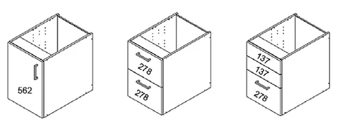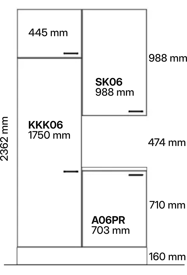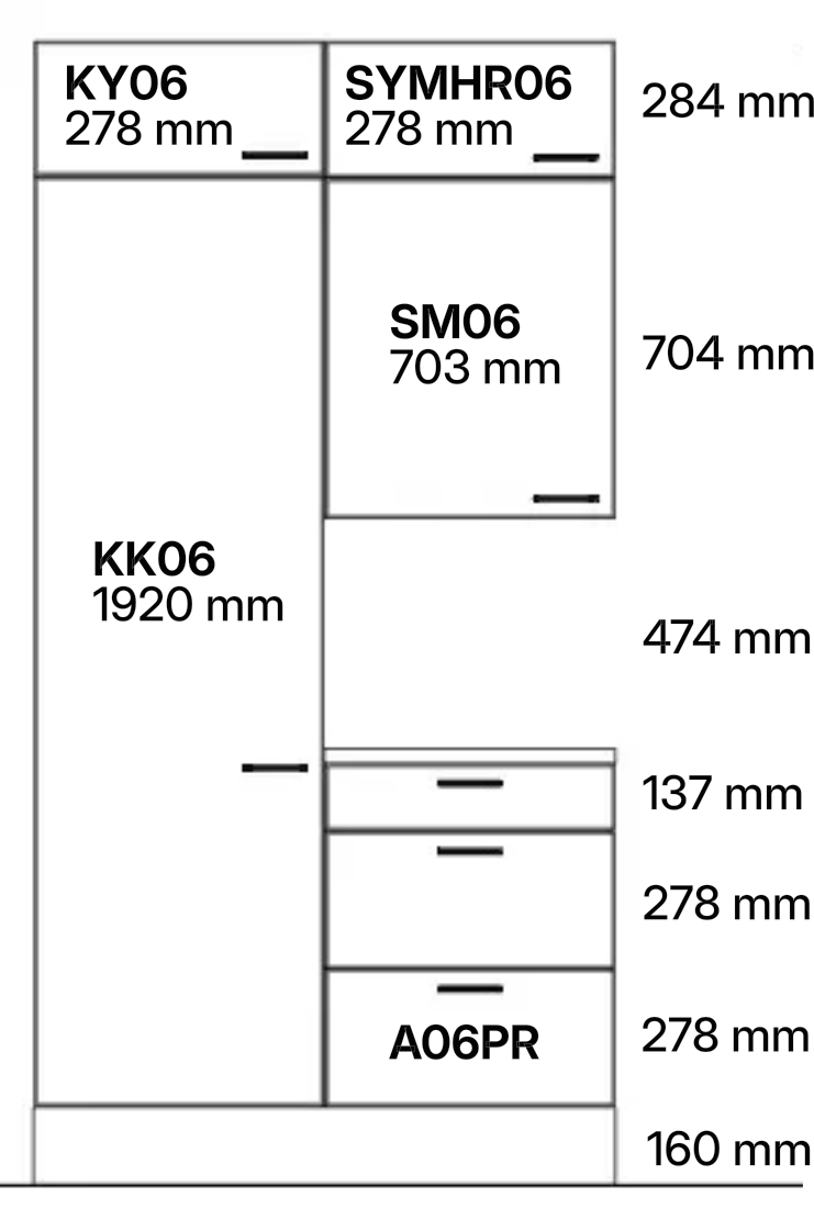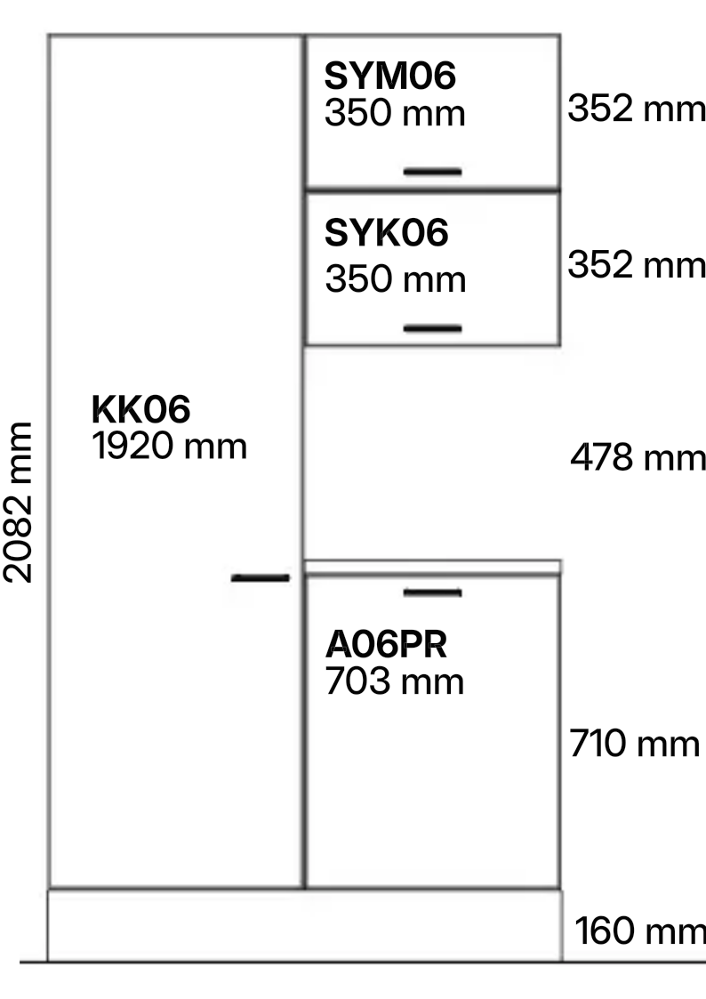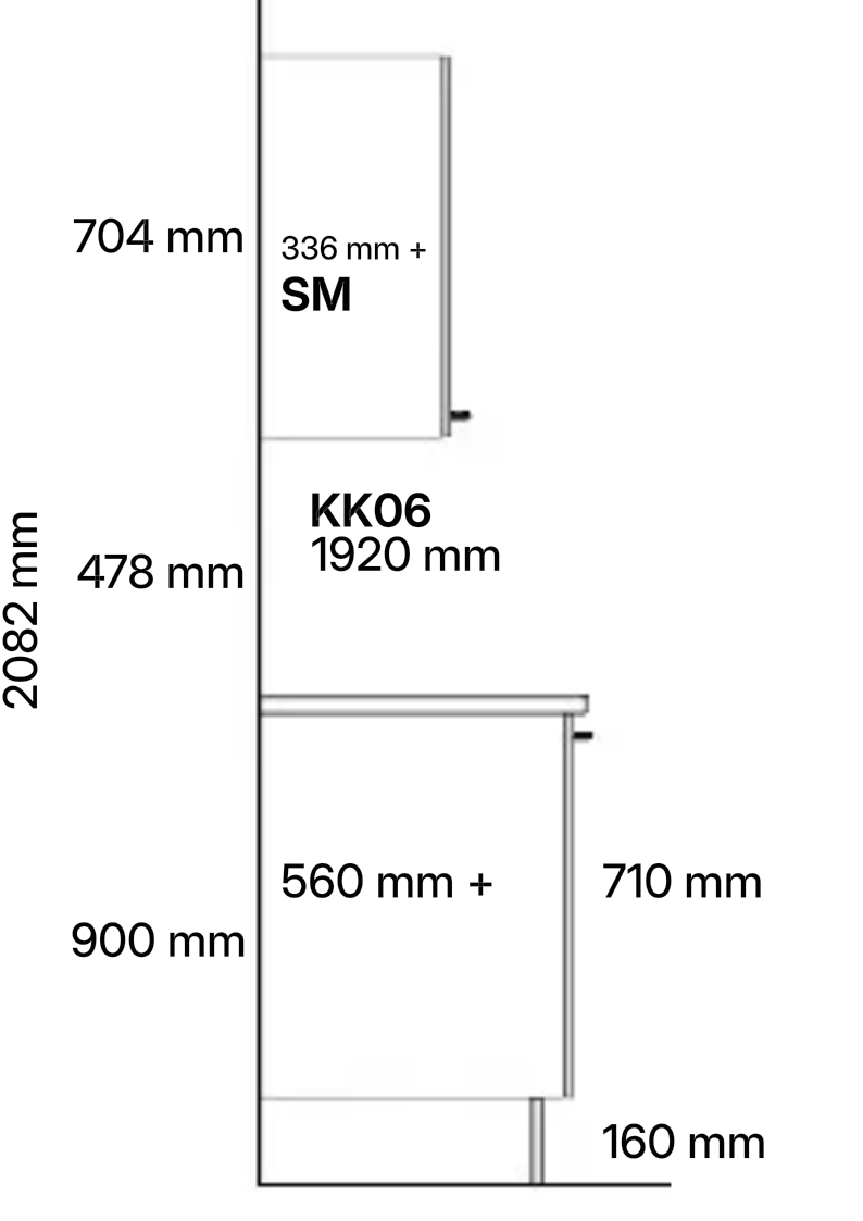 OBS! Kunden bör beakta vitvarutillverkarens rekommendationer för inbyggnadsmÄtt och dÀrmed vitvarornas passform i stommarna.