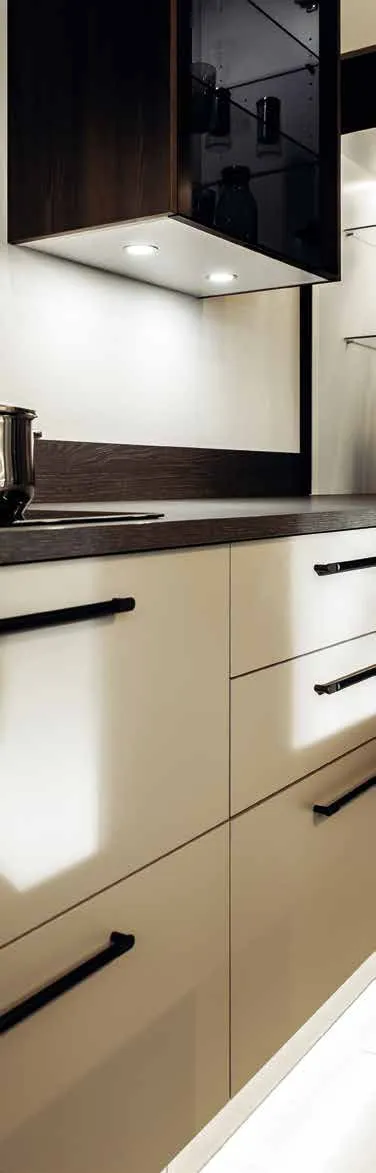 Vid borrning av luckmodellerna INTEGRA och FINGER PULL mÄste man ta hÀnsyn till greppspÄrets mÄtt samt dess placering i luckorna. Borrningarna avviker till viss del jÀmfört med normala luckprofiler. Luckorna hanteras alltid som bÀnkskÄpsluckor. Observera dÀrför, nÀr ni anger luckornas hÀngning, att greppspÄret dÄ hamnar i överkant. PÄ topphÀngda luckor Àr greppspÄret i underkant.