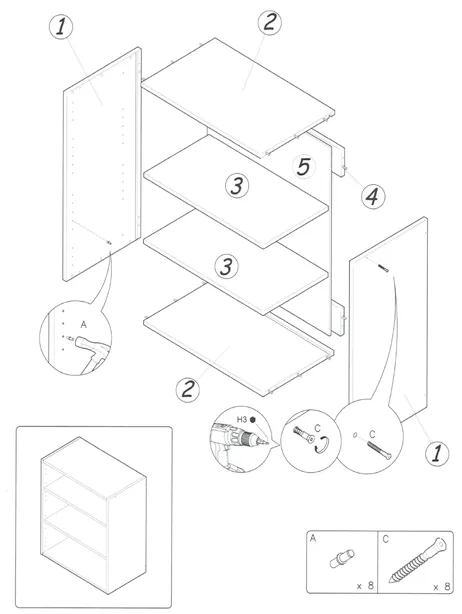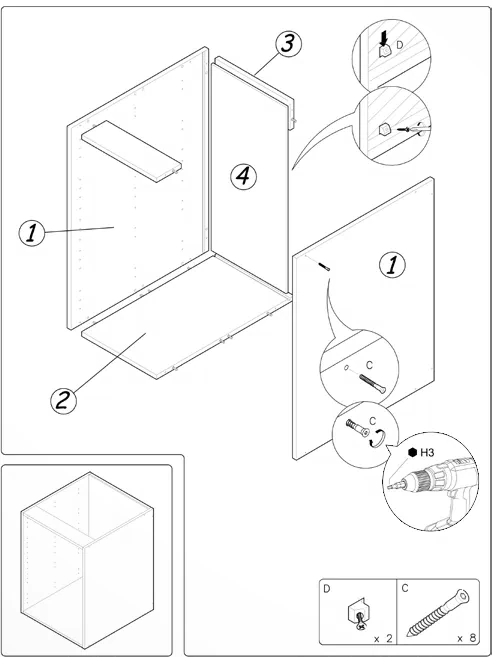 Sockelben och hyllplan ingÄr inte i stompaketet.